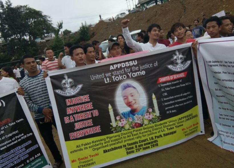 On Monday at the state capital, hundreds of people came out to take part in a rally staged by the All East Kameng District Students’ Union (AEKDSU), and Toko’s family.