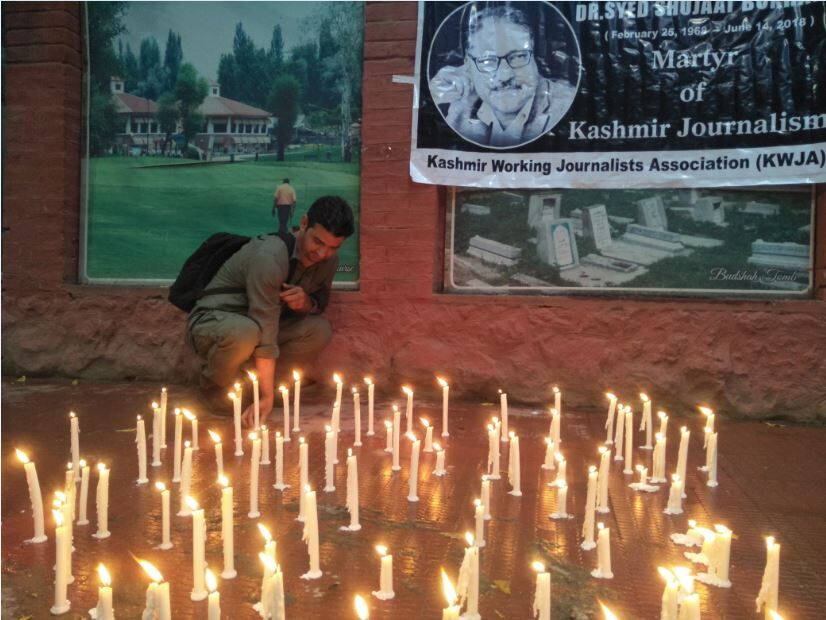 At exactly 7 pm scores of journalists gathered at the famed Polo View to lit candles with the aim to show solidarity with the slain Kashmiri editor and to remember him. Journalists made speeches to throw light on late Bukhari’s work and professional life. The journalists’ body KWJA is also planning a seminar on late Bukhari by next month.
