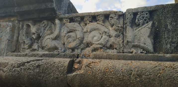 A dragon carved on the Chatiya. Dragons represent enlightenment in Buddhism.