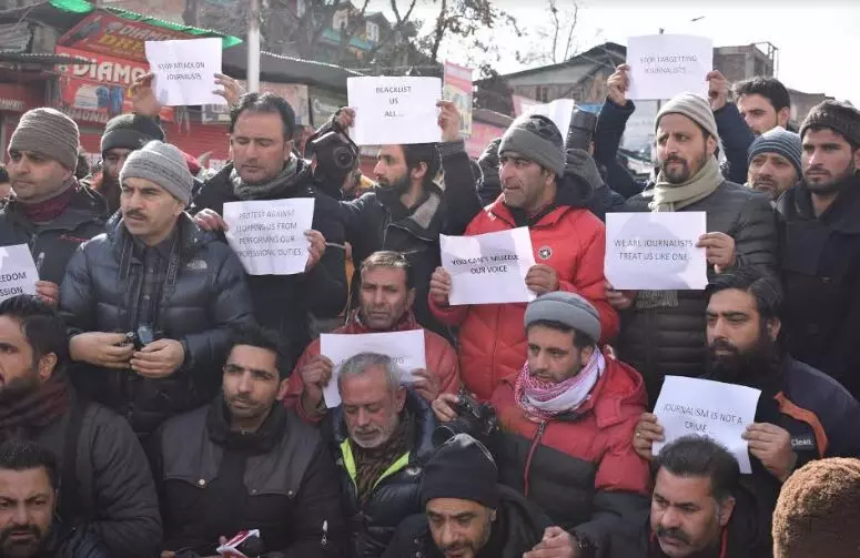 Journalists protest at being denied entry to Republic Day parade in Srinagar