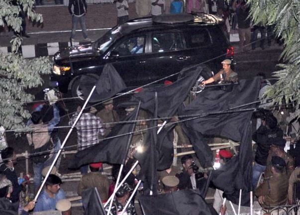 Here on a two day visit, the Prime Minister was first greeted with black flag protests at Jalukbari by the students of Gauhati University on his way to Raj Bhawan.
