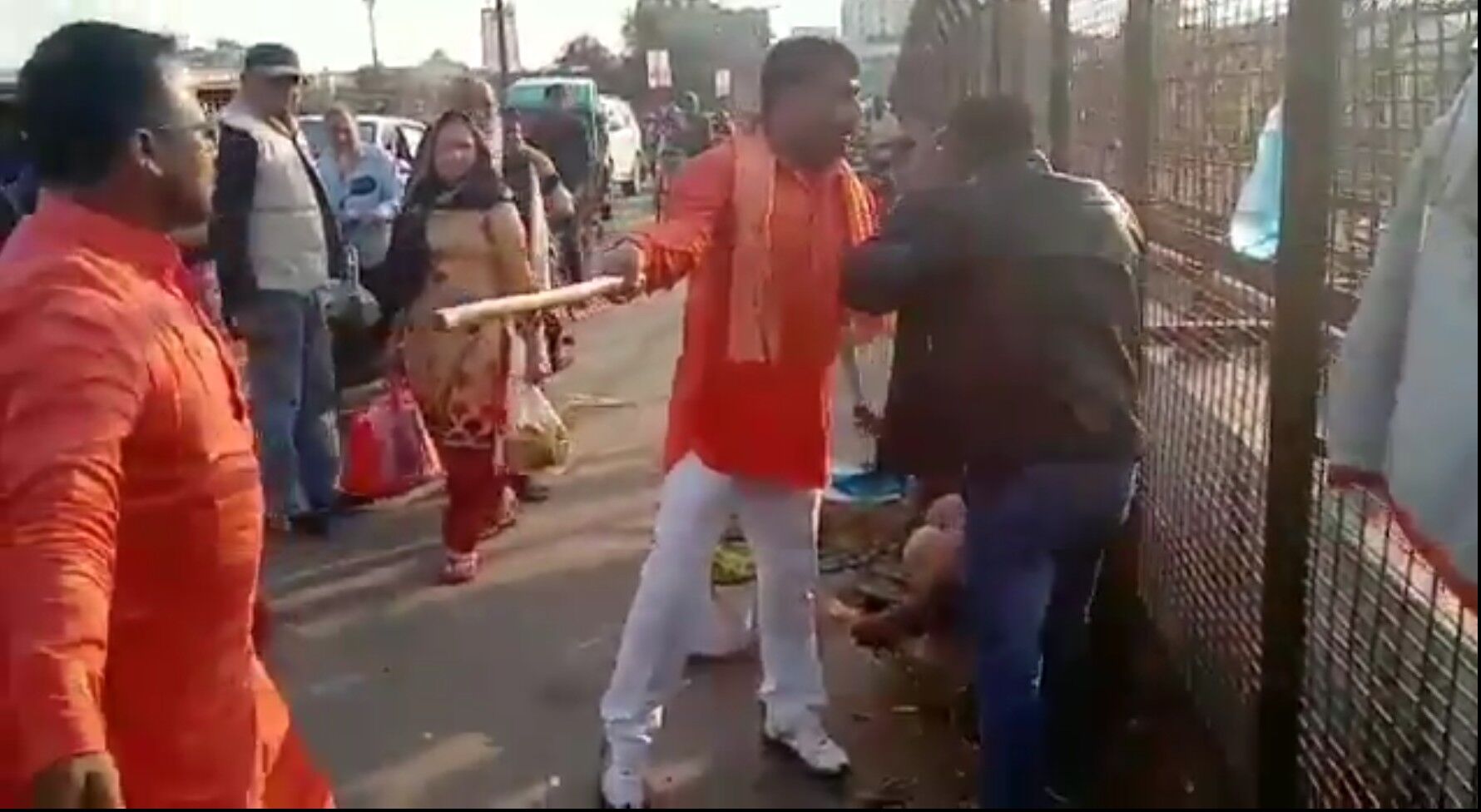 “Why are you assaulting him?” he asks, to which the stick wielding man replies that they are Kashmiris.