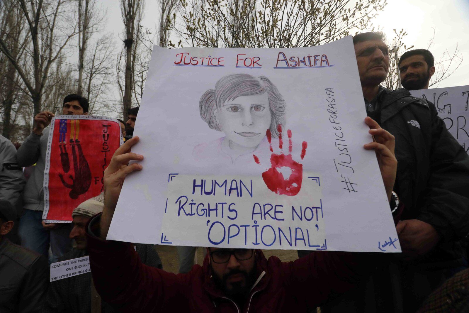 2. A tribal child had it much worse. She was abducted, raped, tortured by a BJP affiliated man in a temple. Policemen and others joined in. Her body was discarded after a week by the rapists in the forests. Her bereaved family was threatened, and abused to a point where they could not bury her in their own village, and finally had to flee their home for safety. The intention behind this rape was communal, to use it to terrify the Bakarwal tribe and prevent them from coming down to the lower areas dominated in that part by the majority community. If this was not enough two ministers of the BJP wing of the government in Jammu and Kashmir along with the Kathua legislator led a procession replete with the national flag supporting the rapists. They made provocative speeches inciting violence against the nomads. This is on video. The ‘incident’ attracted no remedial action from the BJP, not a word of condemnation but only aggressive support even as Kashmir Valley erupted in protests. Not a word from Delhi, not a word from Srinagar except from the PDP that had the sense to realise that this “incident” had become the proverbial last straw for the people.