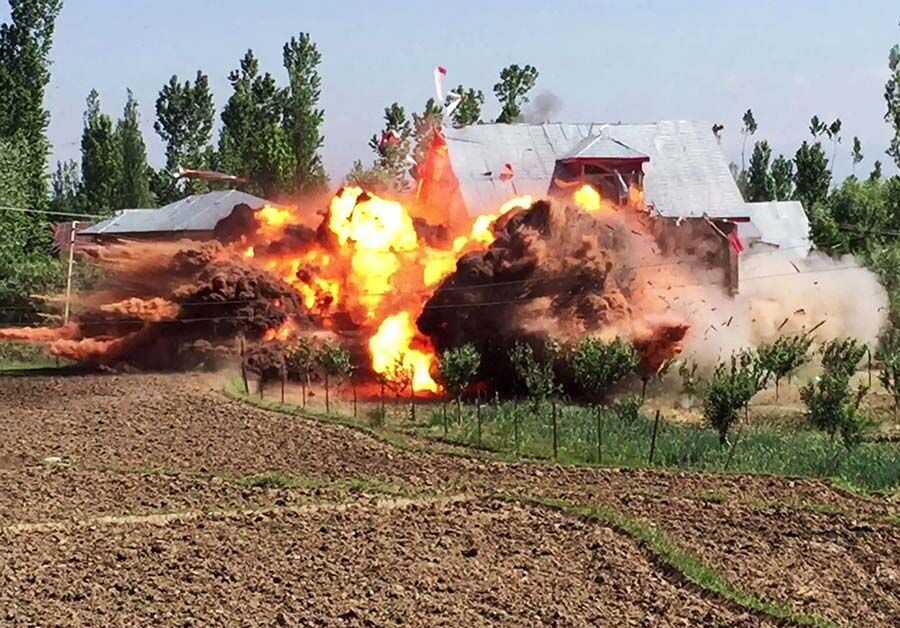 Photograph of Kashmiri house being blasted in an encounter (Kashmir Life)