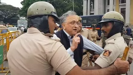 Cover Photograph : Historian Ramchandra Guha being detained in Bengaluru