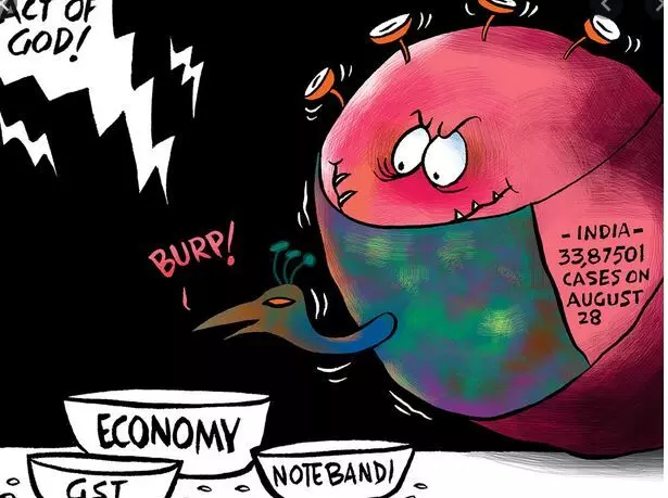 There are more such creative chimeras, but these should do to illustrate my point, which is that our present dispensation has erased the distinction between fact and fiction. Including the distinction between its own actions and the actions of God. The official confirmation of this was the recent statement of our Finance Minister that our horrendous economic slump of -23.9% was " an Act of God" and that therefore the Centre was not bound to pay the GST dues to the states. Actually, the Act of God too is a legal fiction!