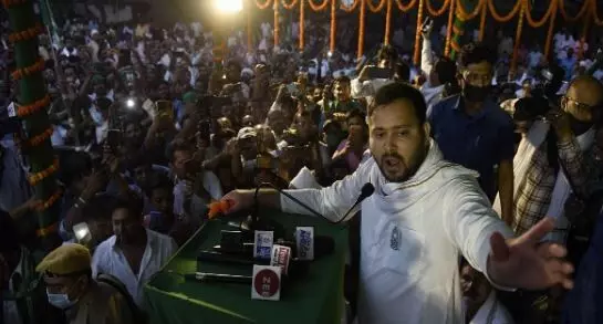 Tejashwi Yadav, just 31 years old, has emerged from the shadows of his father Lalu Prasad Yadav’s image to lead an energetic campaign for the Bihar Assembly elections. So much so that he has moved out of a political abyss to effectively challenge Chief Minister Nitish Kumar and his supporting ally the Bharatiya Janata Party, with exit polls predicting the victory of his mahagathbandhan - Rashtriya Janata Dal, CPI-M, CPI, CPI-M: and the Congress party.