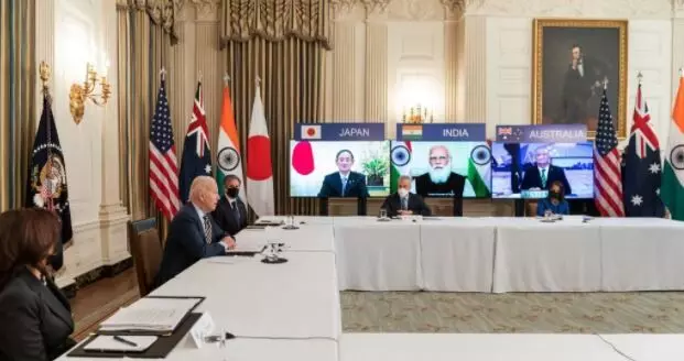 The main achievement of the virtual summit, however, was elsewhere, in the agreement on the division of labour to get the Quad’s Covid-19 ‘vaccine diplomacy’ to outmatch China’s global efforts, underway. According to this schemata India will use its production facilities to produce the vaccine at a fast clip at low cost, the US will facilitate the transactions with due regard to intellectual property rights, etc for Indian pharmaceutical companies to mass produce the latest remedy in the field — the Johnson & Johnson one-shot vaccine and otherwise prepare it for speedy world-wide distribution, Japan will financially underwrite such commercial deals as are involved in joint manufacture, and Australia will pitch in with assistance in vaccine delivery systems.