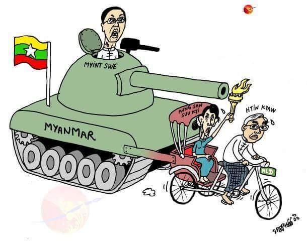 But the cartoon in Irrawaddy from 2016 summed up the essence of Htin Kyaw's Presidency - with Suu Kyi as the self-proclaimed "above-the-president" leader, while she herself has to know the limits of her own 'de facto' power.