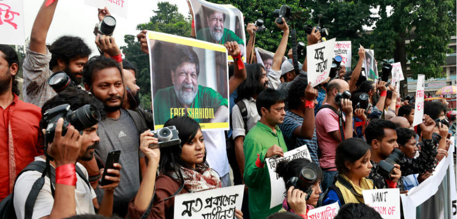 Bangladesh is ostensibly a democracy. But jailing Alam has been a breeze for the prime minster, Sheikh Hasina. Her weapon was Section 57 of the Information and Communications Technology Act. Since 2013, when the act was amended to make it more punitive, around 700 cases have been filed. From March to late July this year alone, 23 Bangladeshi journalists have been sued under the section 57. Those found guilty face between seven to 14 years in prison. Much of the power of Section 57 depends on its vague wording. People can be arrested, for example, for writing online speech that “hurts the image of the nation.”