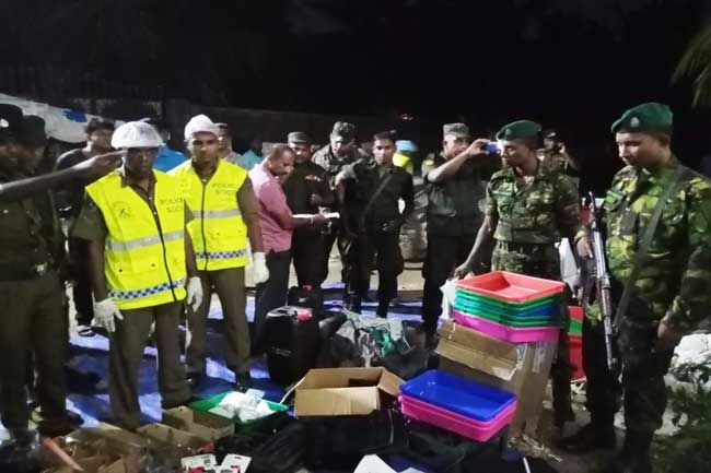 According to the Military Spokesman, Brigadier Sumith Atapattu, combined troops recovered explosives, detonators, gelignite sticks, acid bottles, ISIS flags and backdrop, suicide kits,and military uniforms, from the safe house in Sammanthurai.
