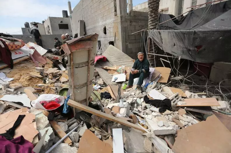 Video shows Palestinians recovering materials from Omar Bin Abd al-Aziz mosque in northern Gaza after it was badly damaged in an Israeli strike: