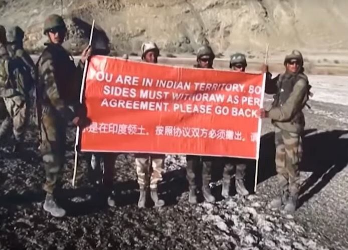 Cover Photograph was shared over all over the social media claiming to show Indian troops with the banner asking the Chinese to go back on May 26. It has not been independently verified by The Citizen.
