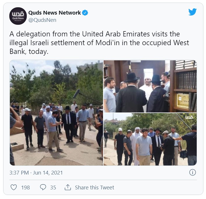 Hundreds of millions of dollars of deals were signed between the two countries, including agreements to sell Israeli settlement goods in the UAE. Last month, an Emirati delegation visited Modiin, an Israeli settlement built on the ruins of Palestinian towns ethnically cleansed in 1948. Part of the settlement also extends into the occupied West Bank.