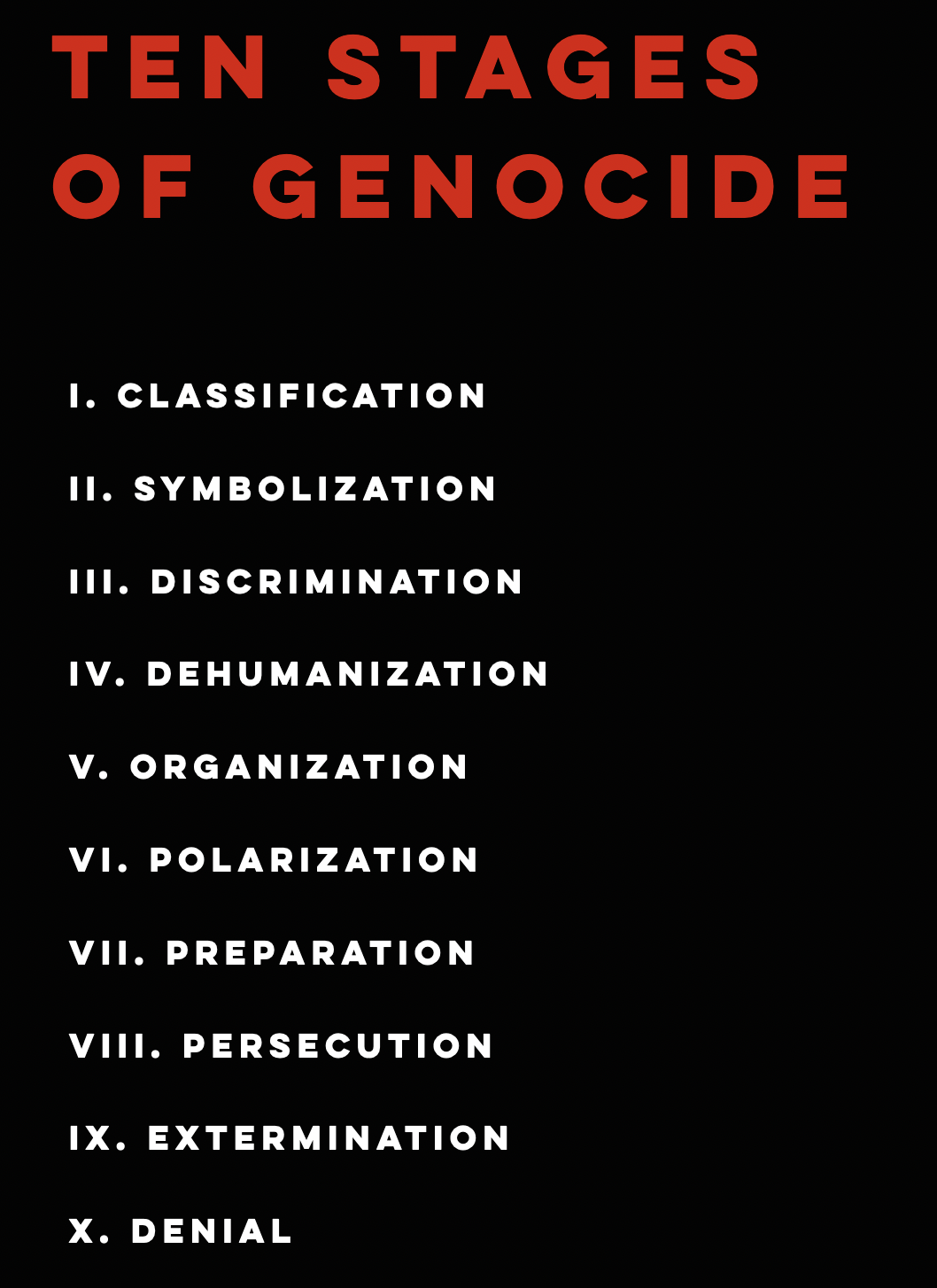 ‘The Genocide Watch model of genocide process, which is the ten stages of genocide (I should really have called it the ten processes of genocide) begins with classification. It begins with trying to exclude people from citizenship.