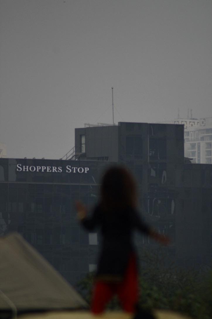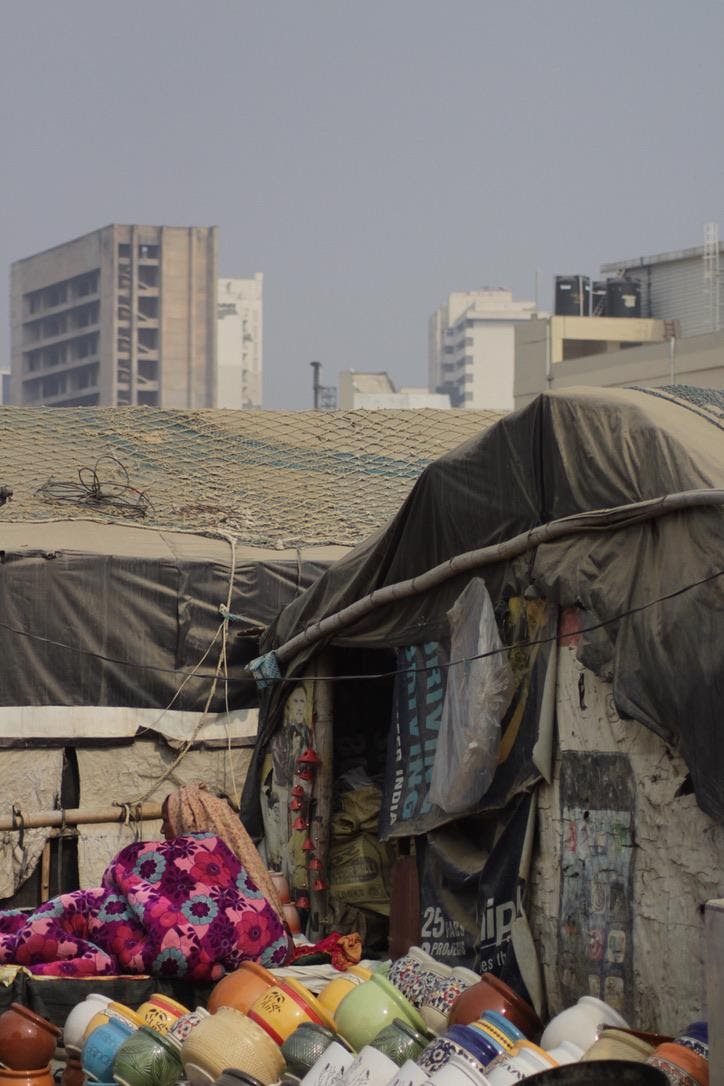 You stare at the reflections of the shiny, hand-painted vintage artefacts in the muddy waters trickling along the market lanes. Rich residents in Nike sneakers negotiate with barefoot Banjara women in their Hasli anklets. Kids comfortably seated in their baby-seats in SUVs look at kids dancing on auto-rickshaws. Behind the roofs of huts the tall skyscrapers stare at you. The Banjaras stare right back into their eyes, unafraid.