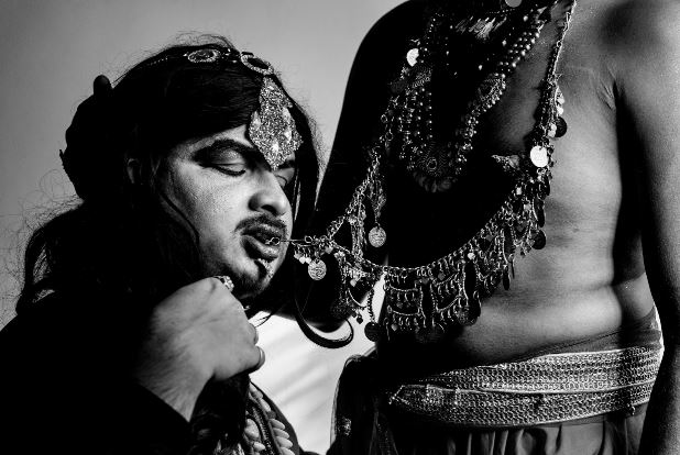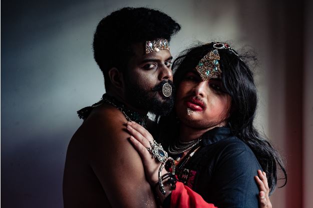 Our references were the folk tales of Dayan, Witches and Chudails, cause its so easily used. The performance was of a storyline of a feminine goth, Vissskanya, with revealing moustache and body hair, seducing and embracing the lover, as they go through the idea of how to abide their love when she has choked masculinity to death. The shoot took around two hours.
