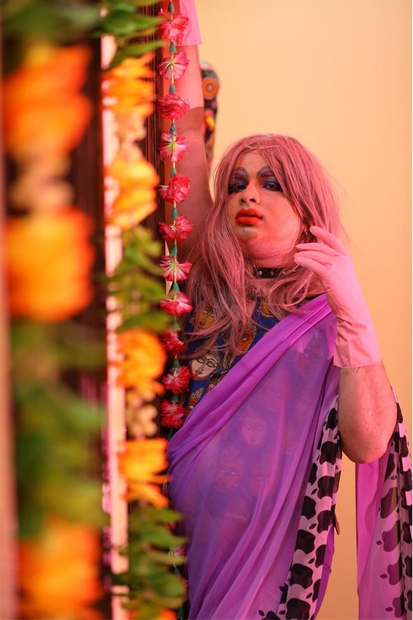 The majority of these Asthanayikas are old and conservative women imageries and not something relatable to this age diverse gender spectrum. We moved out of seeing gender as a conventional binary and my constant vision to rebuild the narratives of asthanaika with a gender non confirming imagery paved the way to a photo performance project.