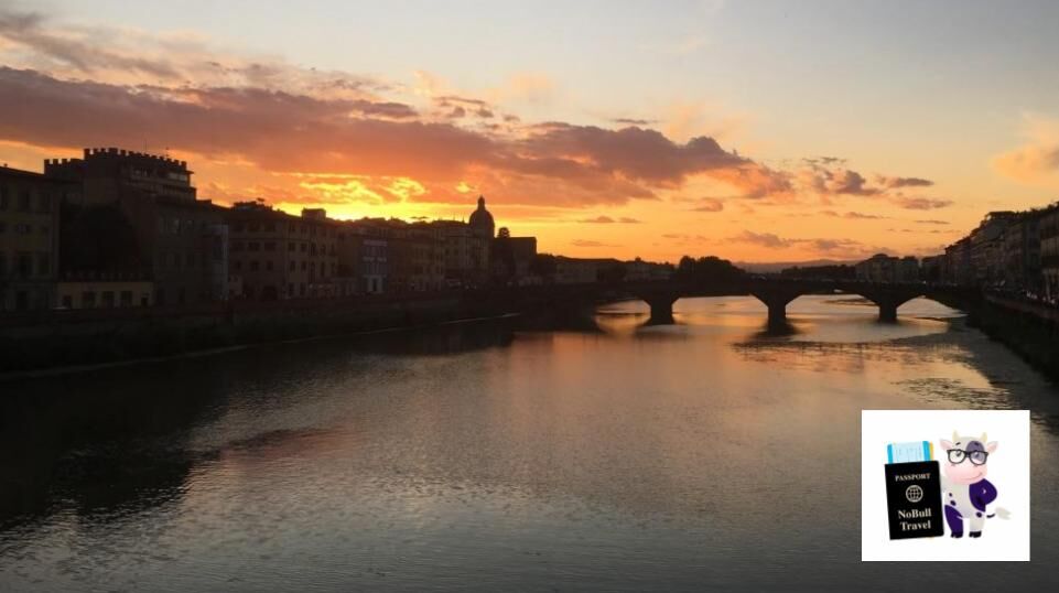 The burnt orange sky, the tranquil Arno, the dark outlines and the timelessness of this moment. #cowmera