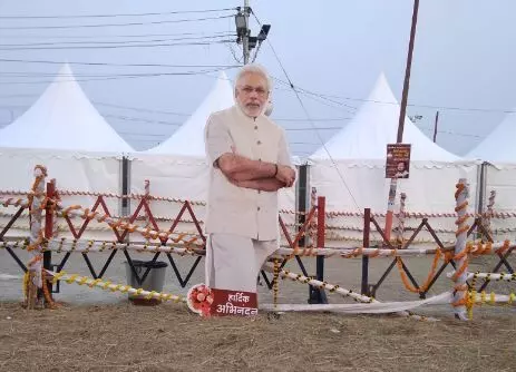 The Kumbh Mela has become a venue for political campaigning for the BJP prior to the upcoming general election. The moment you exit Allahabad Junction or the Prayagraj bus stand, you encounter a lot of hoardings - in fact the entire city is replete with hoardings - on which the faces of BJP leaders and ministers greet people and claim the credit for organizing the Kumbh Mela. As if the Kumbh Mela would not have taken place without them!