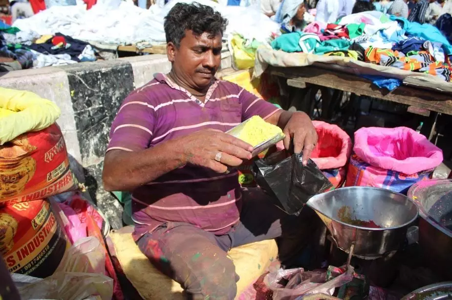Local vendors in Delhi don’t seem happy this year due to a decrease in the sale of colours: with the coming of Chinese products consumers prefer to buy them because they are cheap, fancy and durable. Also, with the spread of online shopping people are frequenting markets less and less. “Earlier I used to sell all my stock but for the last few years I barely manage to sell 70% of my stuff,” said Salman a local vendor at Sadar Bazar who has been in this business for the past nine years.