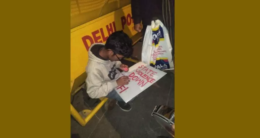 NEW DELHI: “We are going to stay here the entire night, till the Jamia students are not released, hospitalised and treated. Our demands are simple. Students are protesting against the Citizenship Amendment Act. How can the police enter the library, the hostels, washrooms without permission, asked political activist N.Sai Balaji while protesting against the Delhi police action outside its headquarters.