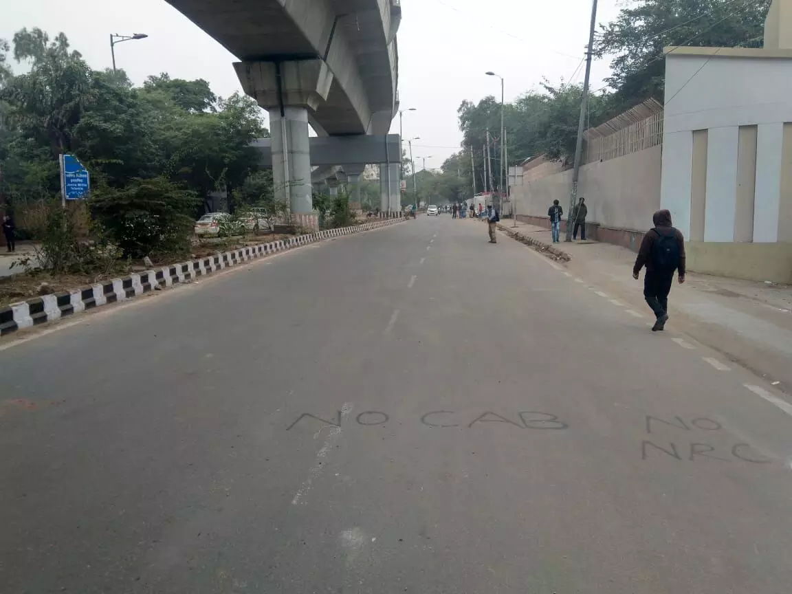 Even before the collapsed road fences, the stones and rocks littering the stretch of road splitting the Jamia campus in two, even before the hoards of anxious faces making their way towards Gate 7 of the college after 15th December’s brutal police attacks -- one could hear the silence.