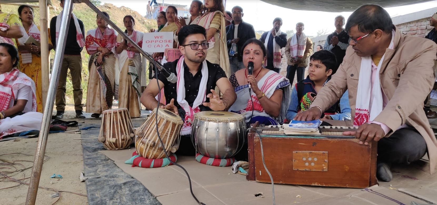 Today’s sit-in dharna organised by the Assamese Society of Capital Complex in Itanagar was characteristic of similar protests that have been daily held across Assam since December 13, where protestors sang songs about Assamese nationalism.