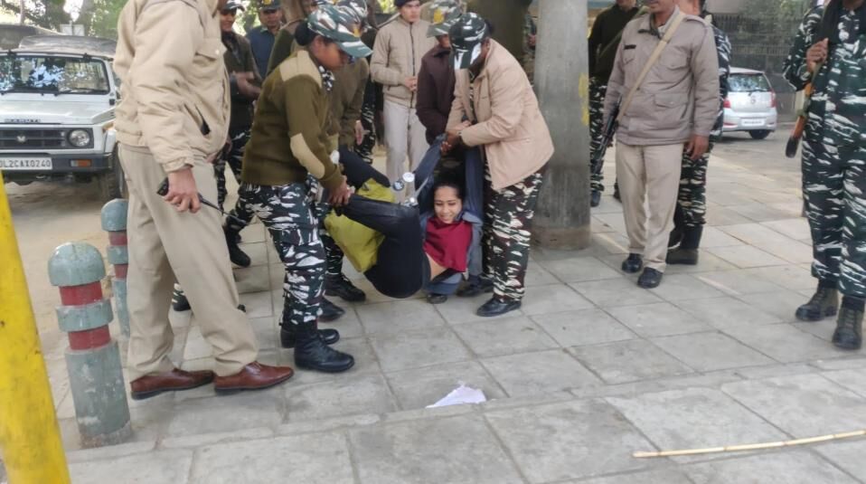 Kawalpreet Kaur, Delhi president of All India Student's Union (AISA) said on Twitter that she was detained while sitting in an auto-rickshaw outside the UP Bhawan and was manhandled on the way. N Sai Balaji, the National President of AISA and former JNUSU president was detained as well.