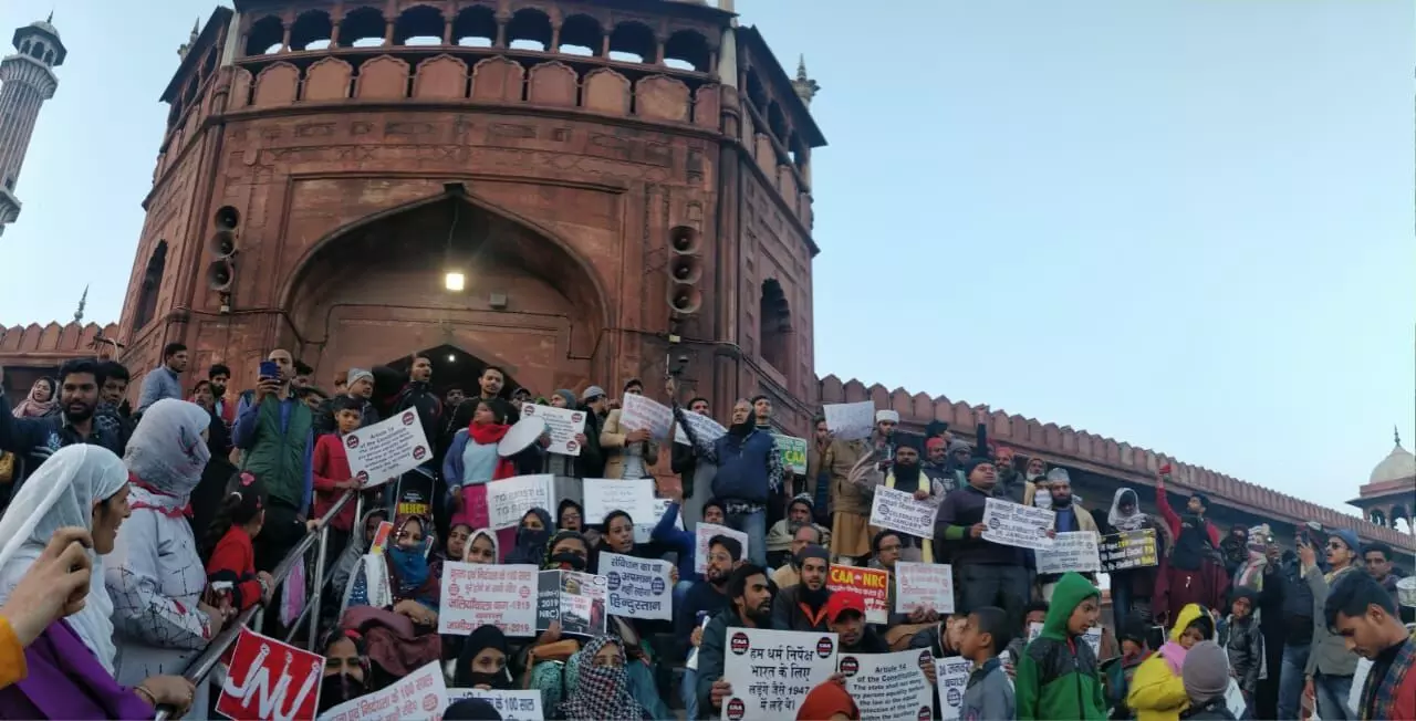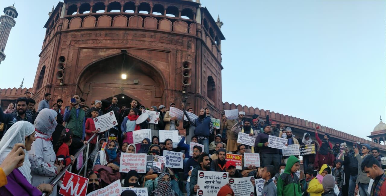 A momentous protest that big television news channels chose to ignore, had hundreds reaching Jama Masjid to pledge their support to the Constitution of India as they opposed the Citizenship Amendment Act, the National register for Citizens, and the National Population Register --- all denounced as schemes to divide India along religious lines.