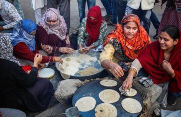 The Sikh farmers largely from the villages of Moga and Bhatinda arrived in eight buses. Stopped by the police just three km from Shaheen Bagh they preferred to go to the neighbouring gurudwara, and came to the site in the morning. They will stay till the elections are over, and confide that part of the reason for making the long journey along with 40 or so of their own women, was after they heard about the threats being given to “our sisters” and the firing. The women cooked together with the jatha well equipped with blankets and warm clothes, fully prepared for a long sit in. And as one elderly farmer said with a smile, “it is good to hear our Muslim sisters shout Inquilab zindabad.”