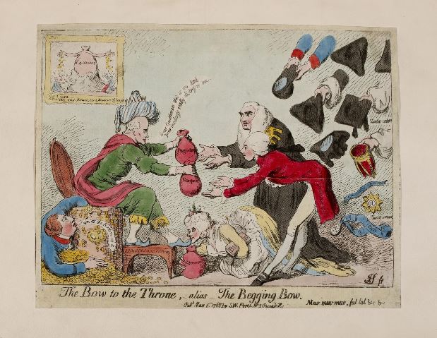 1780 – cartoon by James Gillray showing greed of Warren Hastings, the governor of Bengal. (Source: British Library)