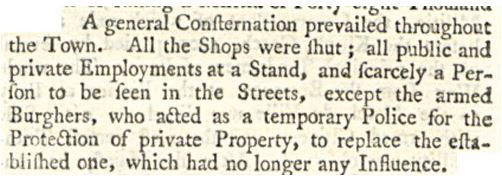 “A general Consternation prevailed throughout the Town. All the Shops were shut; all public and private Employments at a Stand, and scarcely a Person to be seen in the Streets.”