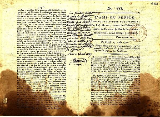 A copy of L’Ami du peuple stained with the blood of Jean-Paul Marat