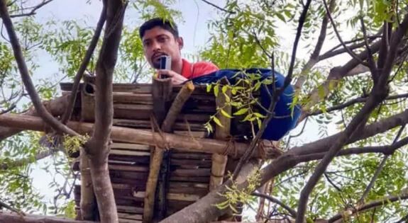 Cover Photograph: History teacher Subrata Pati climbs a tree in his village to get the signal for online classes for his students in Kolkata, 200 km away. Twitter.