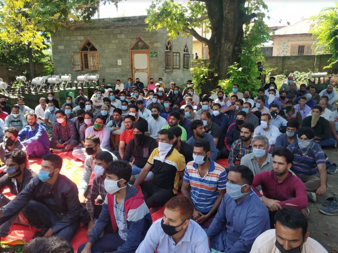 Organised under the banner of PDL/TDL unions, in the Awantipora area of Kashmir a number of workers recently held a protest demonstration outside the electricity division building. They chanted slogans for hours, demanding ‘justice’ in their favour.