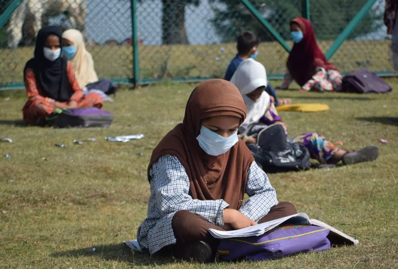 Cover Photo: A child studies in a mask in an open air community school in a remote village in central Kashmir’s Budgam district as schools were closed due to the pandemic. Photo by BASIT ZARGAR for The Citizen.
