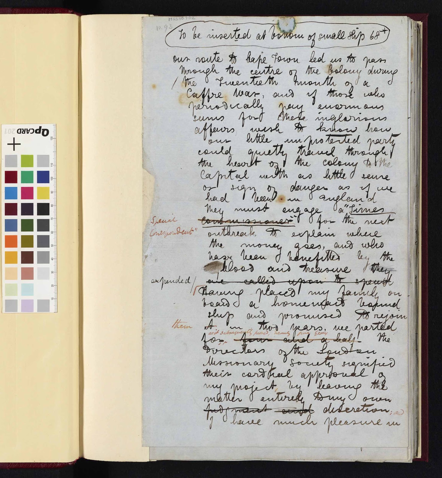 A page from the Manuscript of Missionary Travels and Researches in South Africa (Part III), January-October 1857, by David Livingstone. Copyright National Library of Scotland.