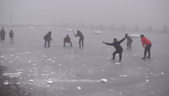 In Photos: Kashmir's Dal Lake Freezes, Becomes a Playground for Walks and Cricket