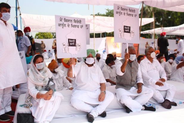 Cover Photograph Twitter: Punjab Chief Minister Amarinder Singh stages protest in support of farmers and for the repeal of the three controversial farm laws.