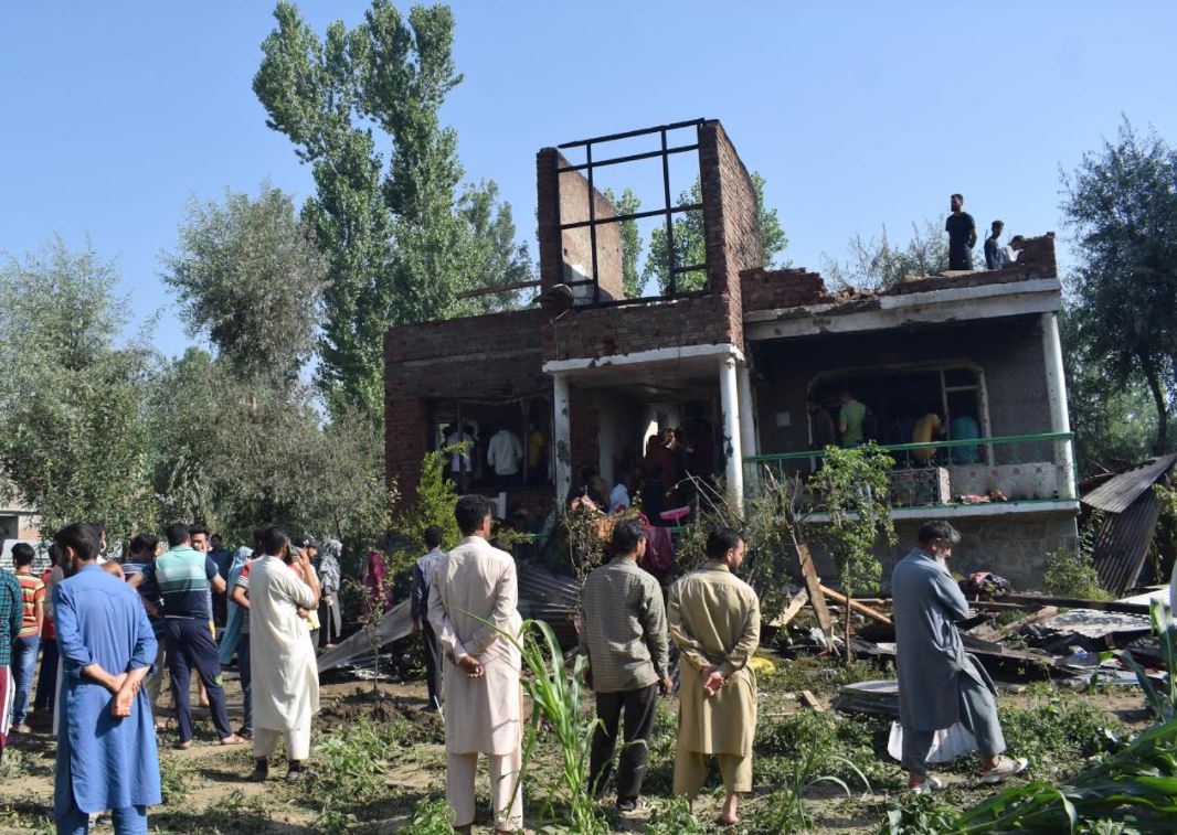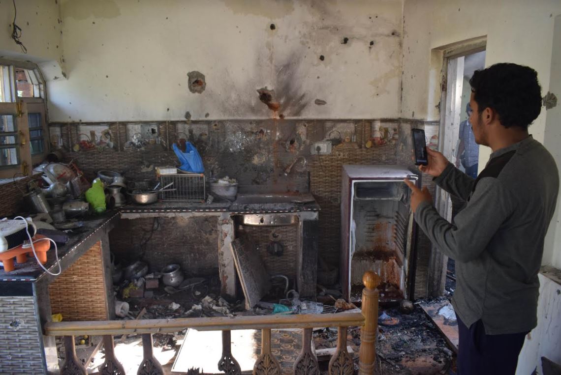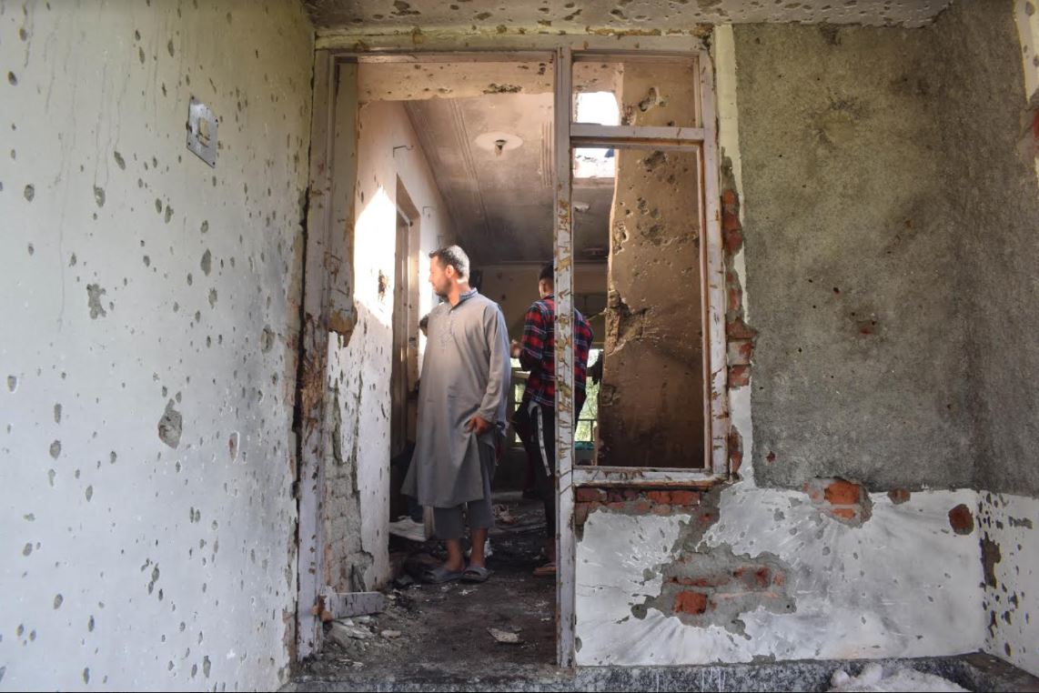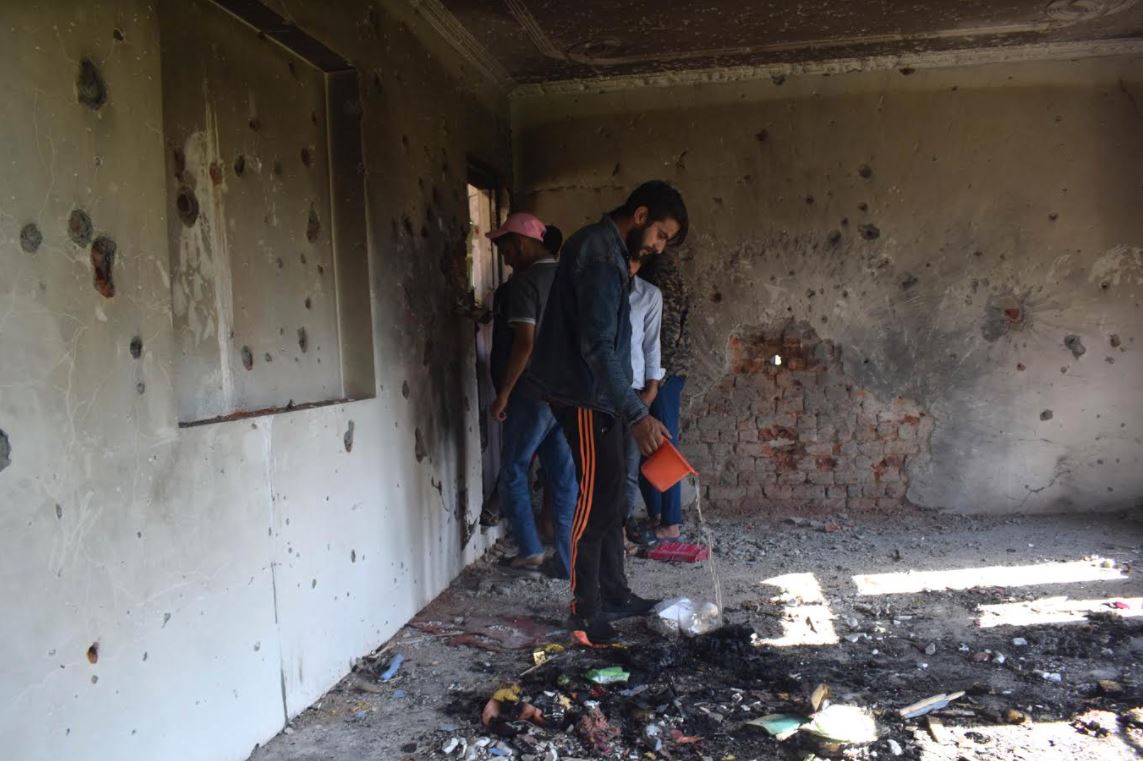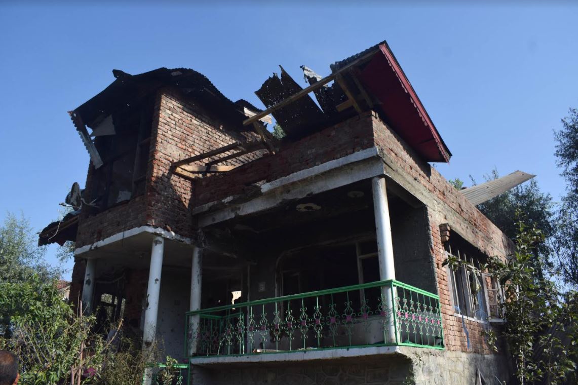 The family was evacuated. The house was destroyed in the encounter. Photographs capture the moments: