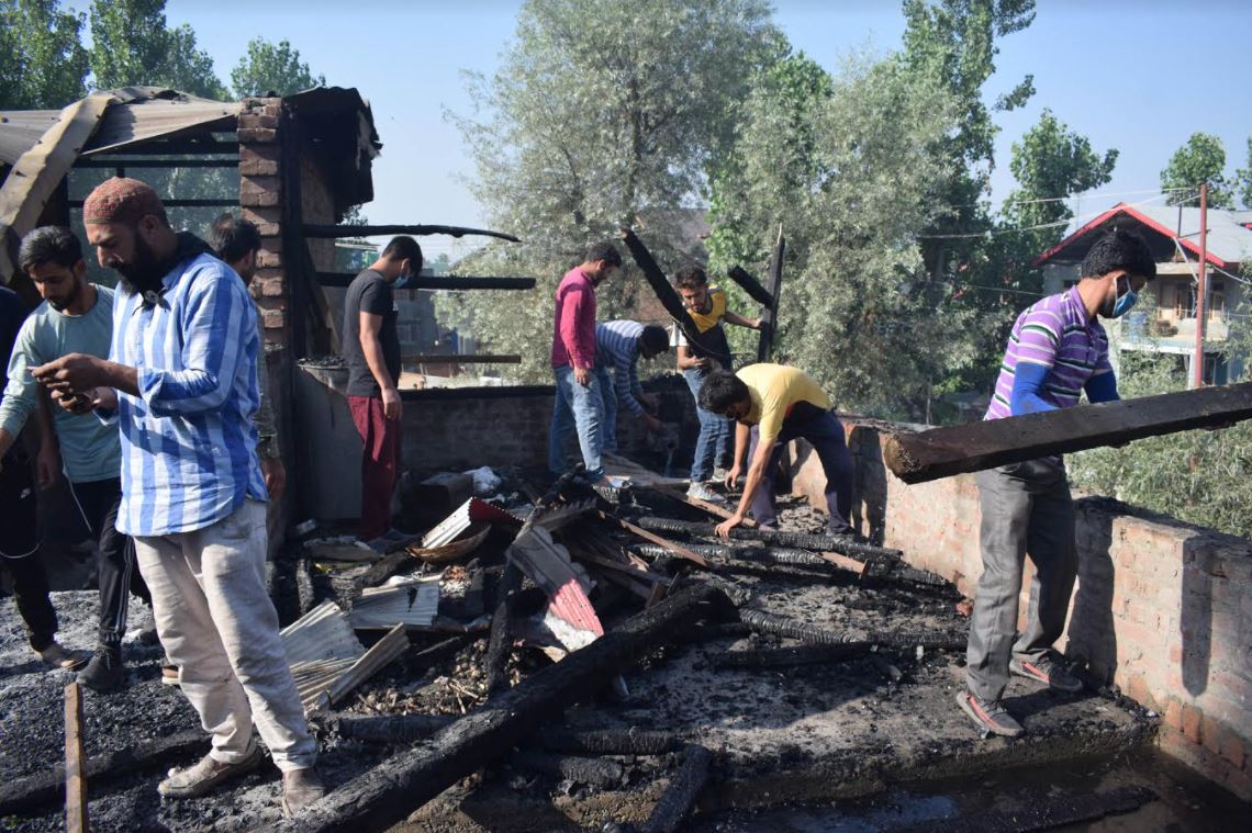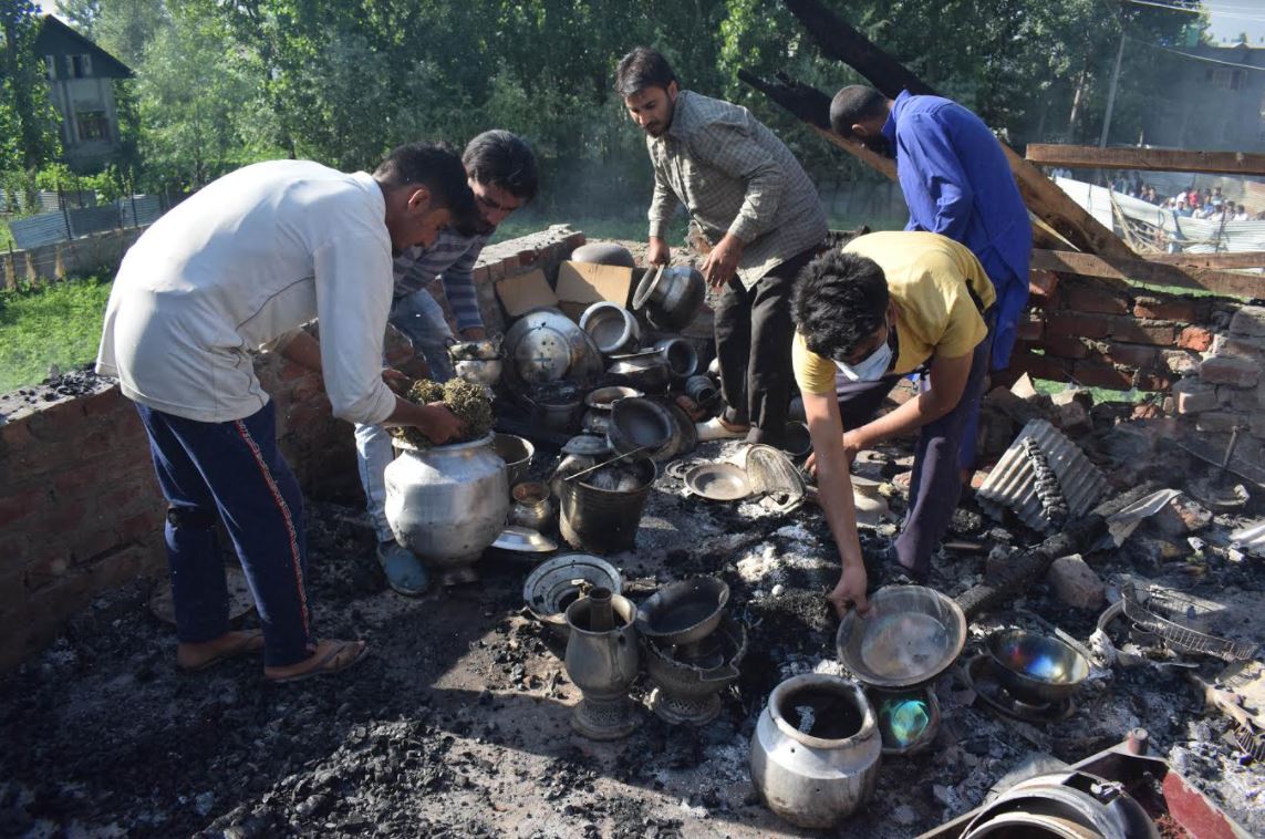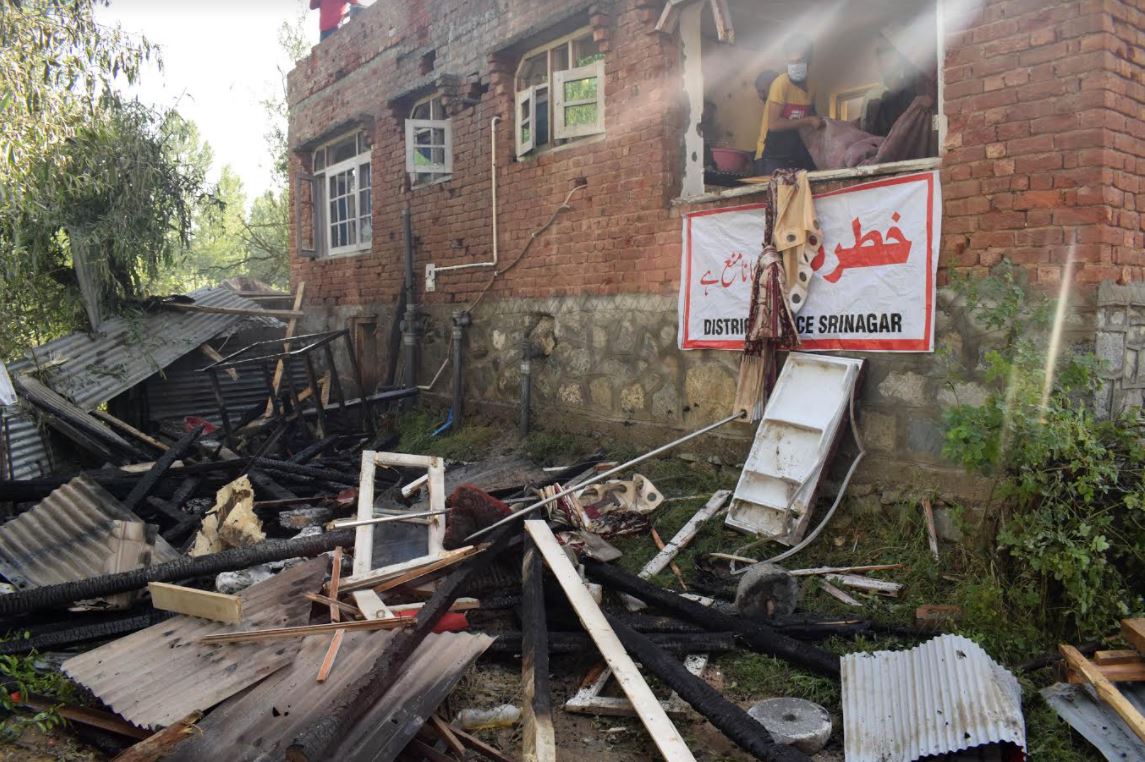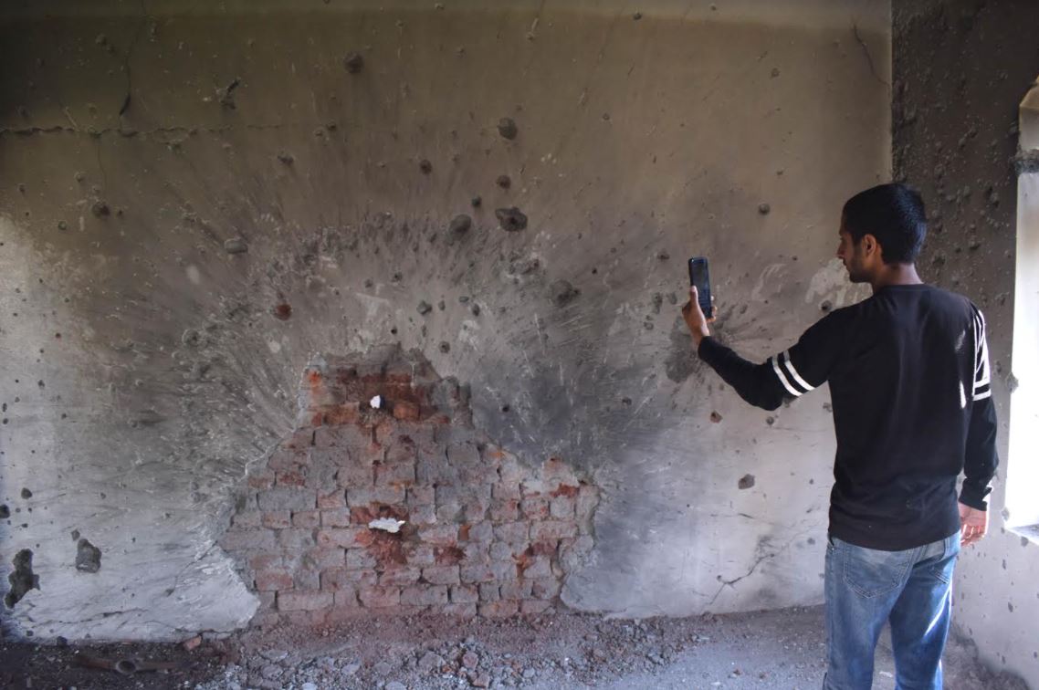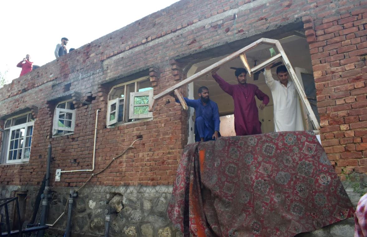 The family was evacuated. The house was destroyed in the encounter. Photographs capture the moments: