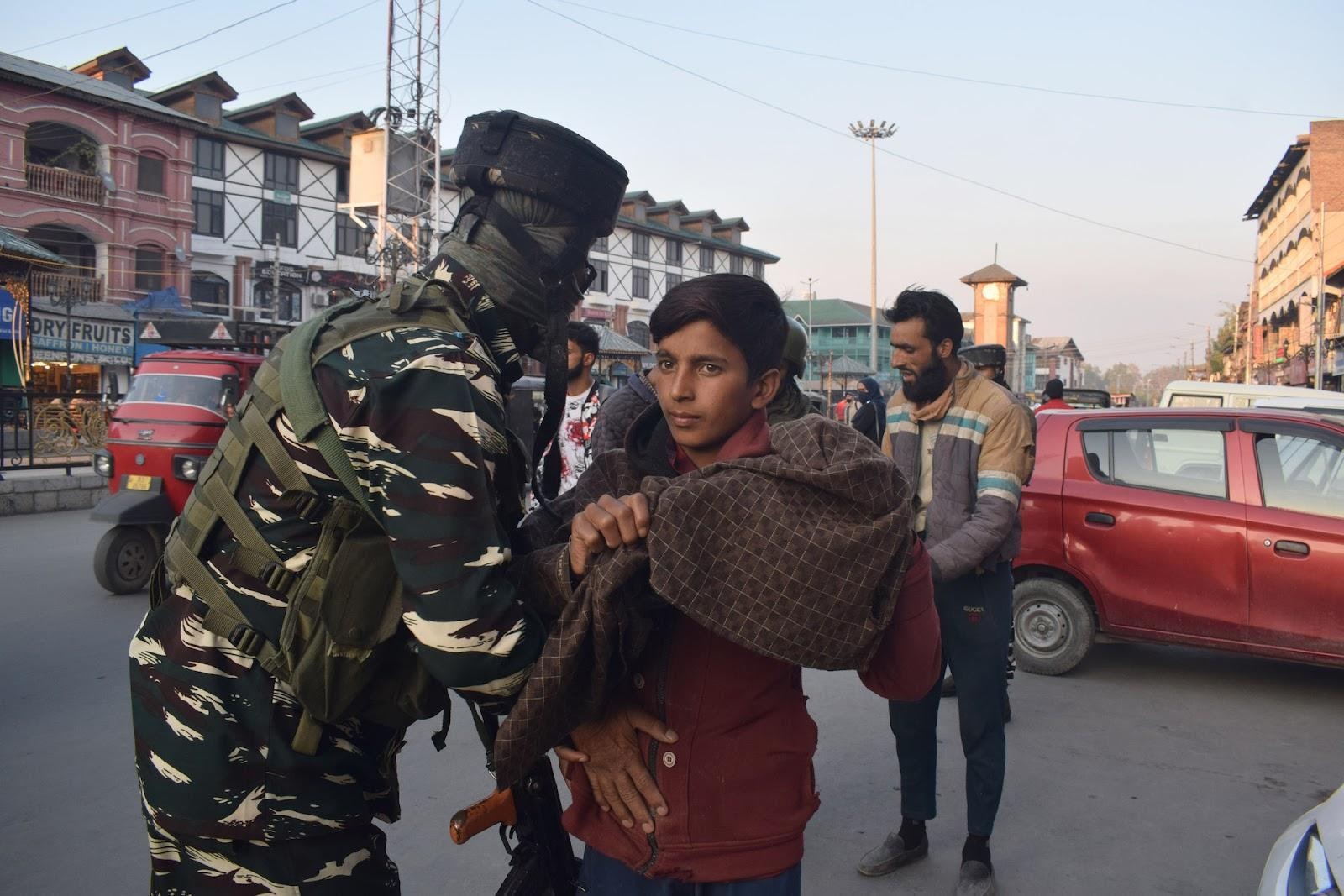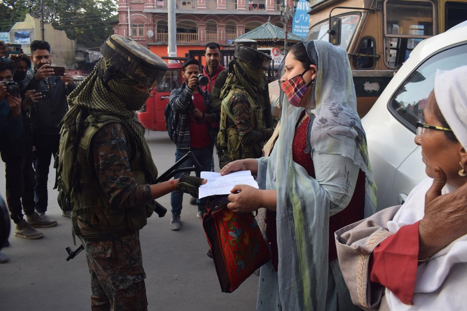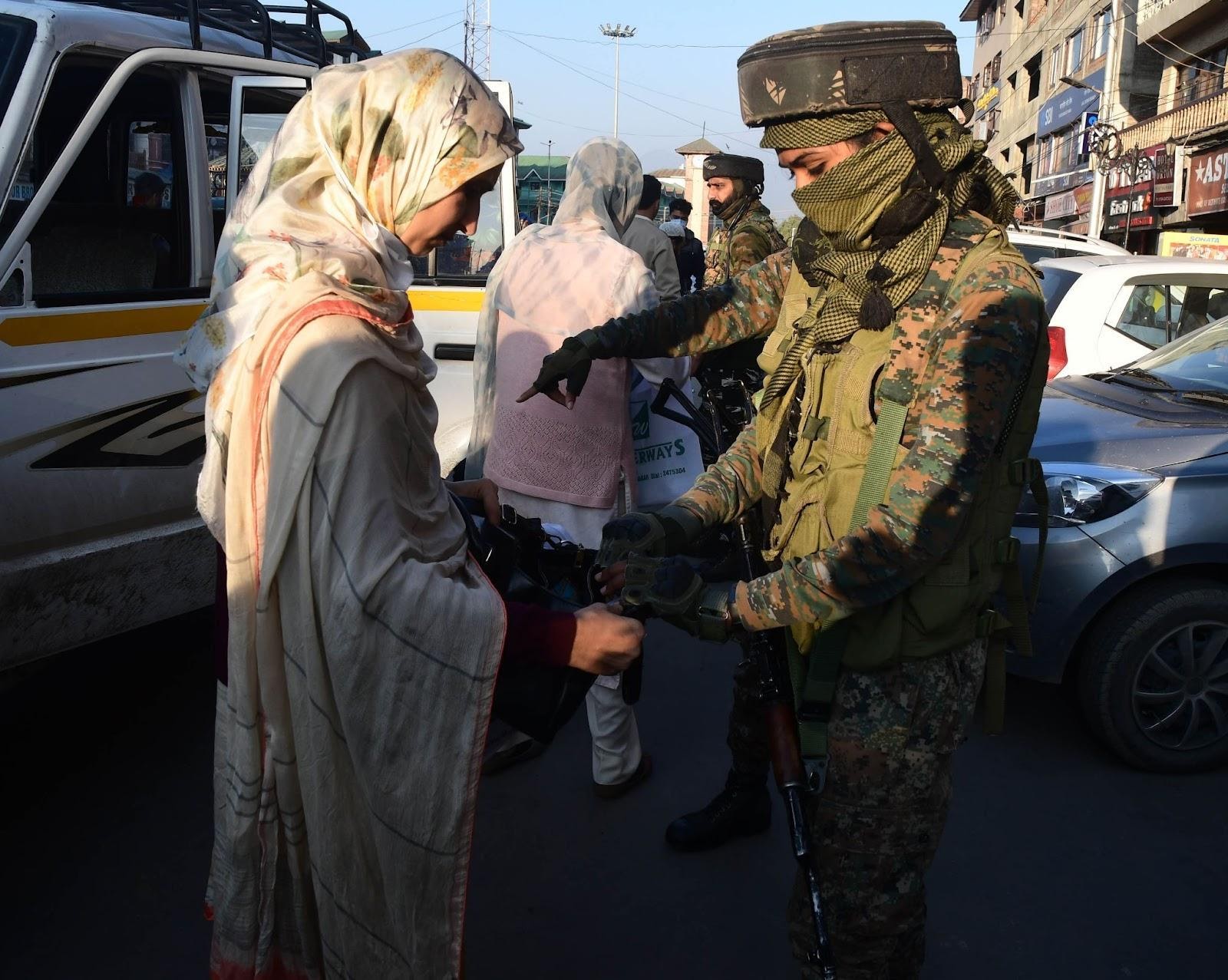 In a reported first, Indian security forces check and frisk Kashmiri women and girls in Srinagar, October 19 and 20.