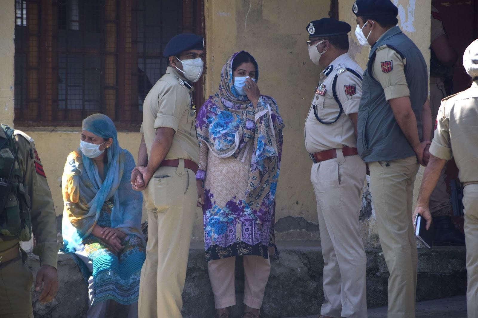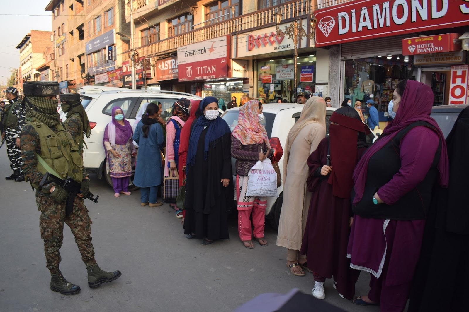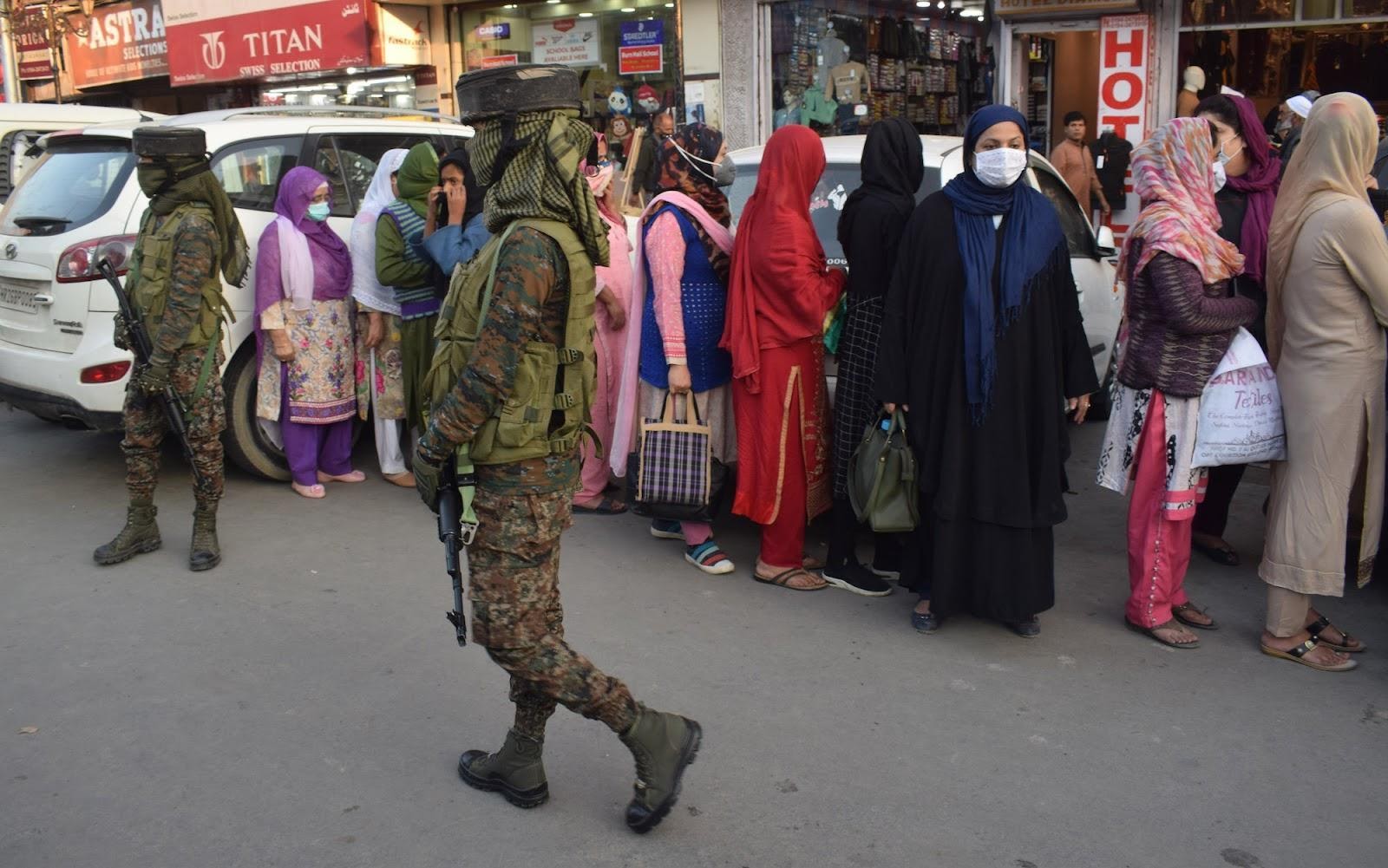 In a reported first, Indian security forces check and frisk Kashmiri women and girls in Srinagar, October 19 and 20.