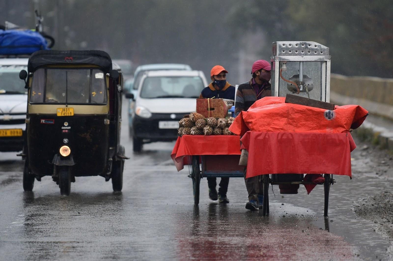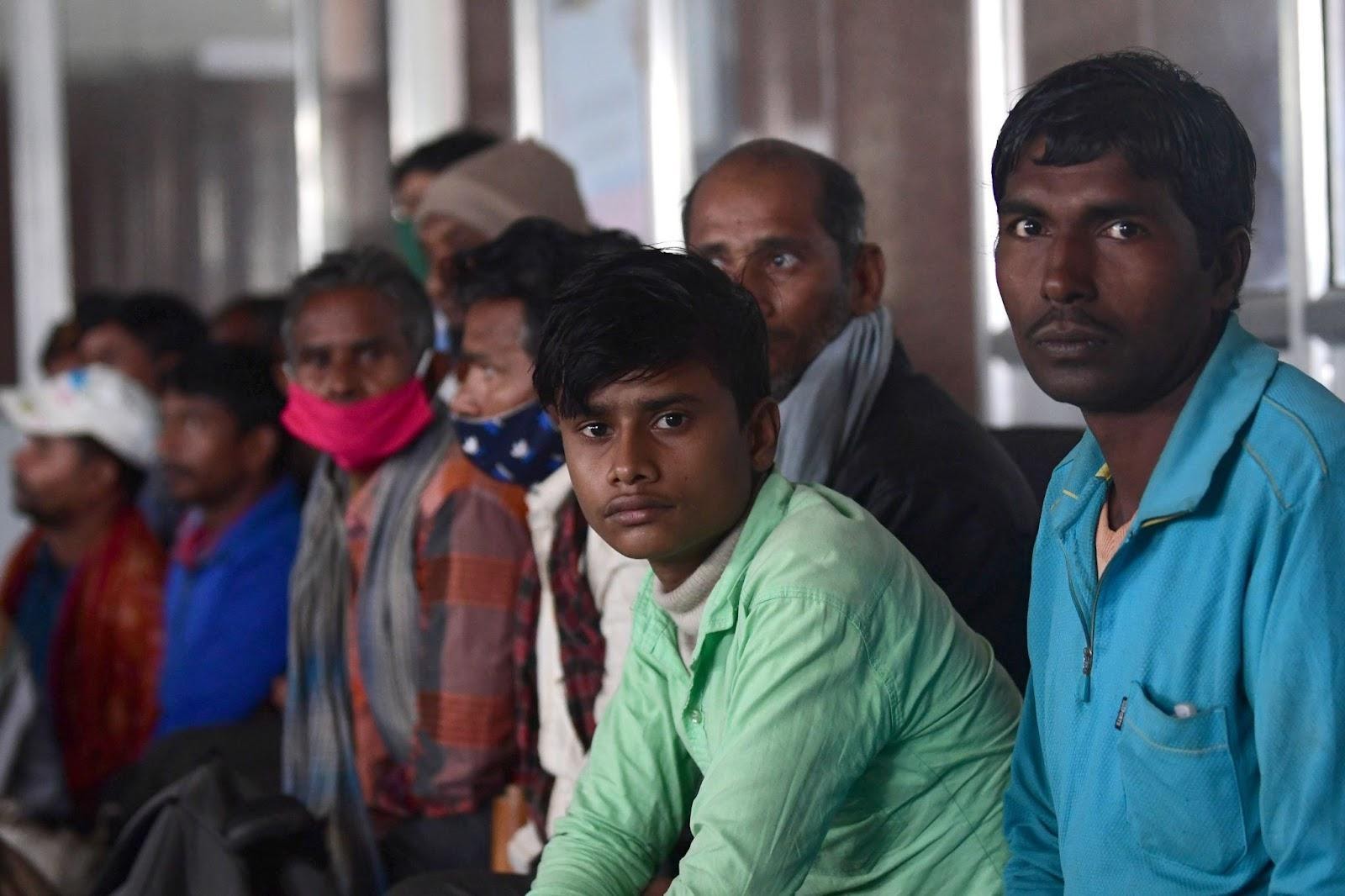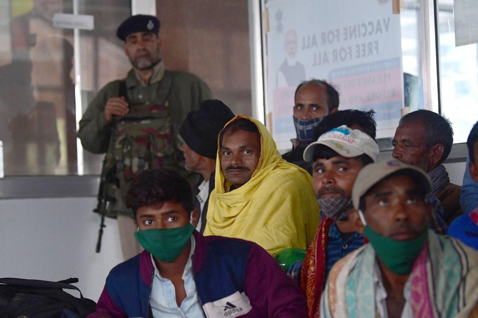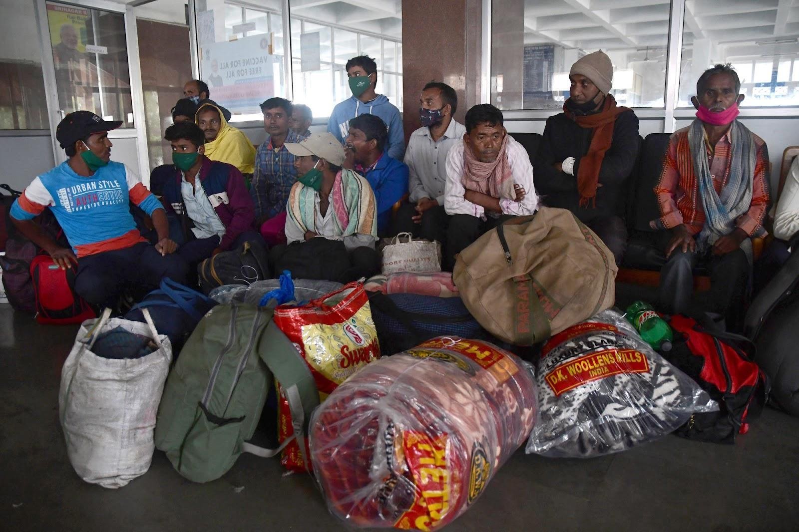 A group of migrant workers from Rajasthan prepare to leave Srinagar on Monday, October 18.