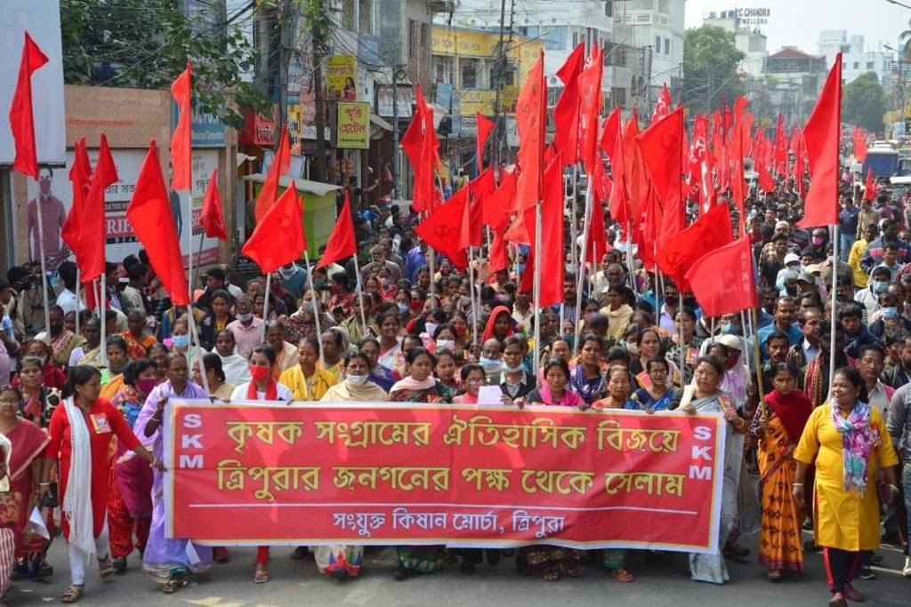 Tripura locals pose 10 demands to BJP government through farmers' victory rally in Agartala