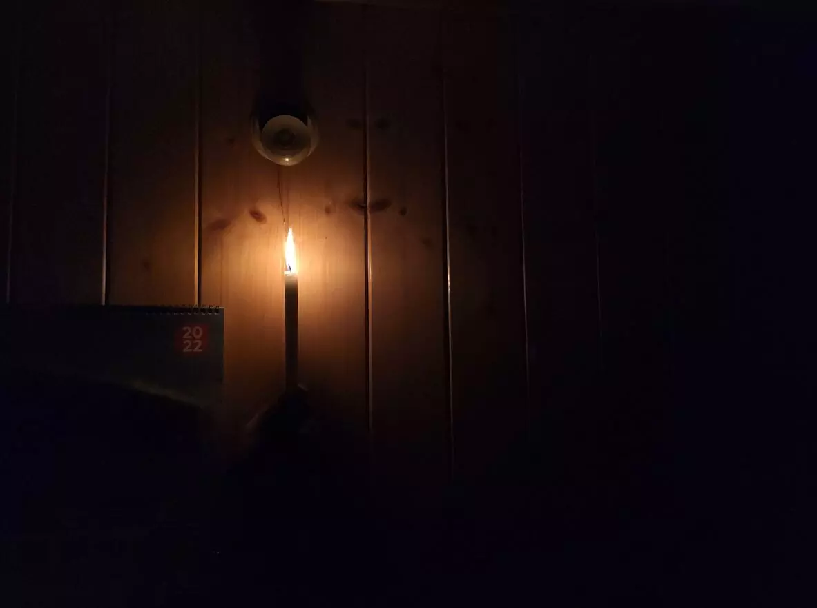 A student studying under the candlelight in between the breaks in electricity. These breaks can go for hours