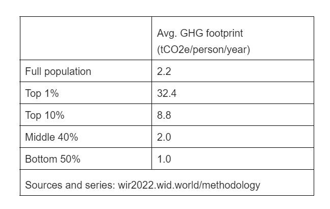 Finally, although India has been a low emitter of greenhouse gases with low average emissions of 2 tonnes of CO2 equivalent, a huge disparity is evident in the percentage contribution. Here the top 1% contributes 32% while the top 10% contributes a 9% equivalent. Against this, the middle 40% and bottom 50% contribute only 2% and 1% respectively.