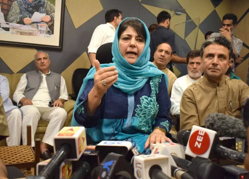 (Cover Photograph Basit Zargar. PDP leader Mehbooba Mufti addressing a press conference after the BJP withdrew support)