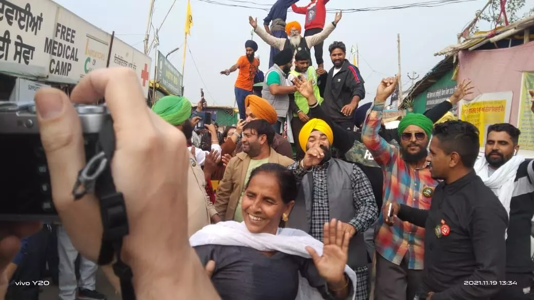 A flood as the government used every possible measure to contain the farmers, and break the back of the movement --- from initial talks that just underlined the government's obstinacy to approaching the courts for action. The unity of the farmers did not break, the movement expanded, and with time the Samyukta Kisan Morcha -- a conglomerate of farmer leaders and organisations -- became stronger and more united if that was possible. Even after the announcement the farmers at Delhi's borders and in their homes waited for direction from the Morcha, before even expressing their views on the PM's announcement.